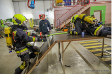 3. Löschangriff: Das Überwinden von Hindernissen und die korrekte Strahlrohrführung unter Atemschutz.