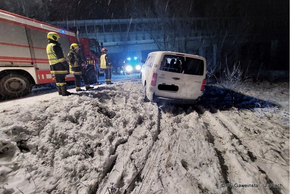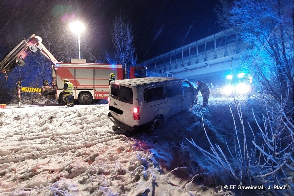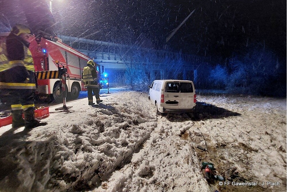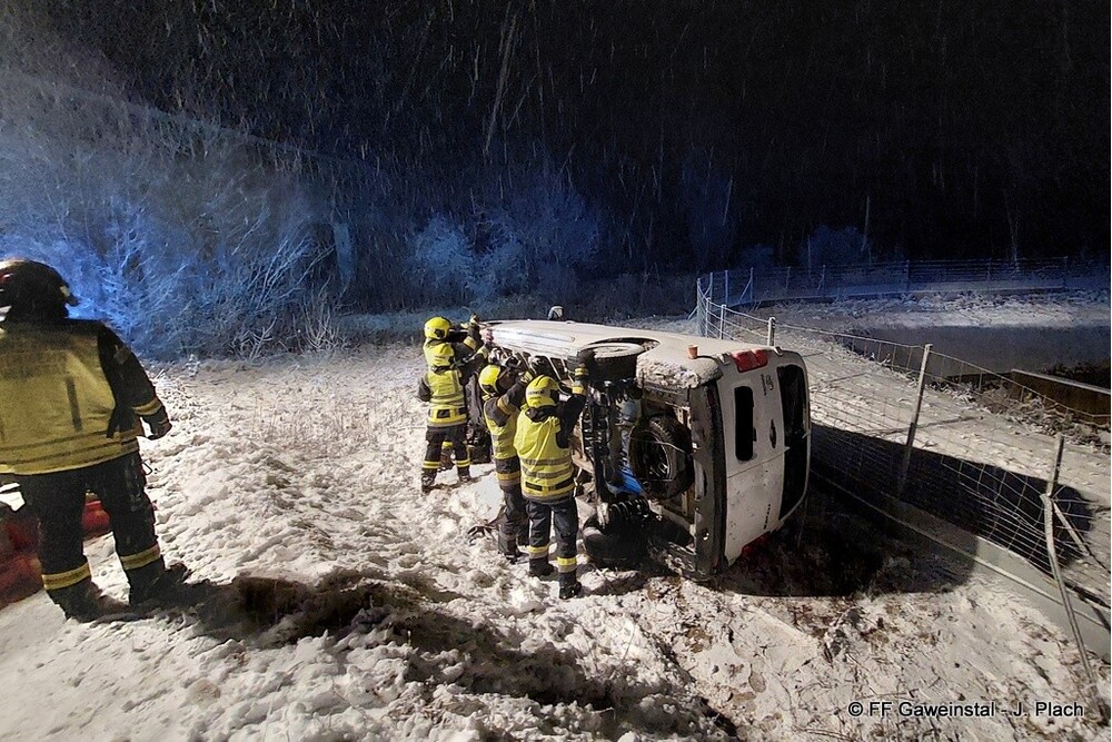 Am Freitag, den 20.2.2026 wurde die Freiw. Feuerwehr Gaweinstal um 1:03 Uhr zur Bergung eines Transportfahrzeuges alarmiert. Nach der Erstinformation durch die Bezirksalarmzentrale wurden die Einsatzfahrzeuge zum Unfallort gelotst, da dieser abseits der üblichen Fahrstrecken lag.